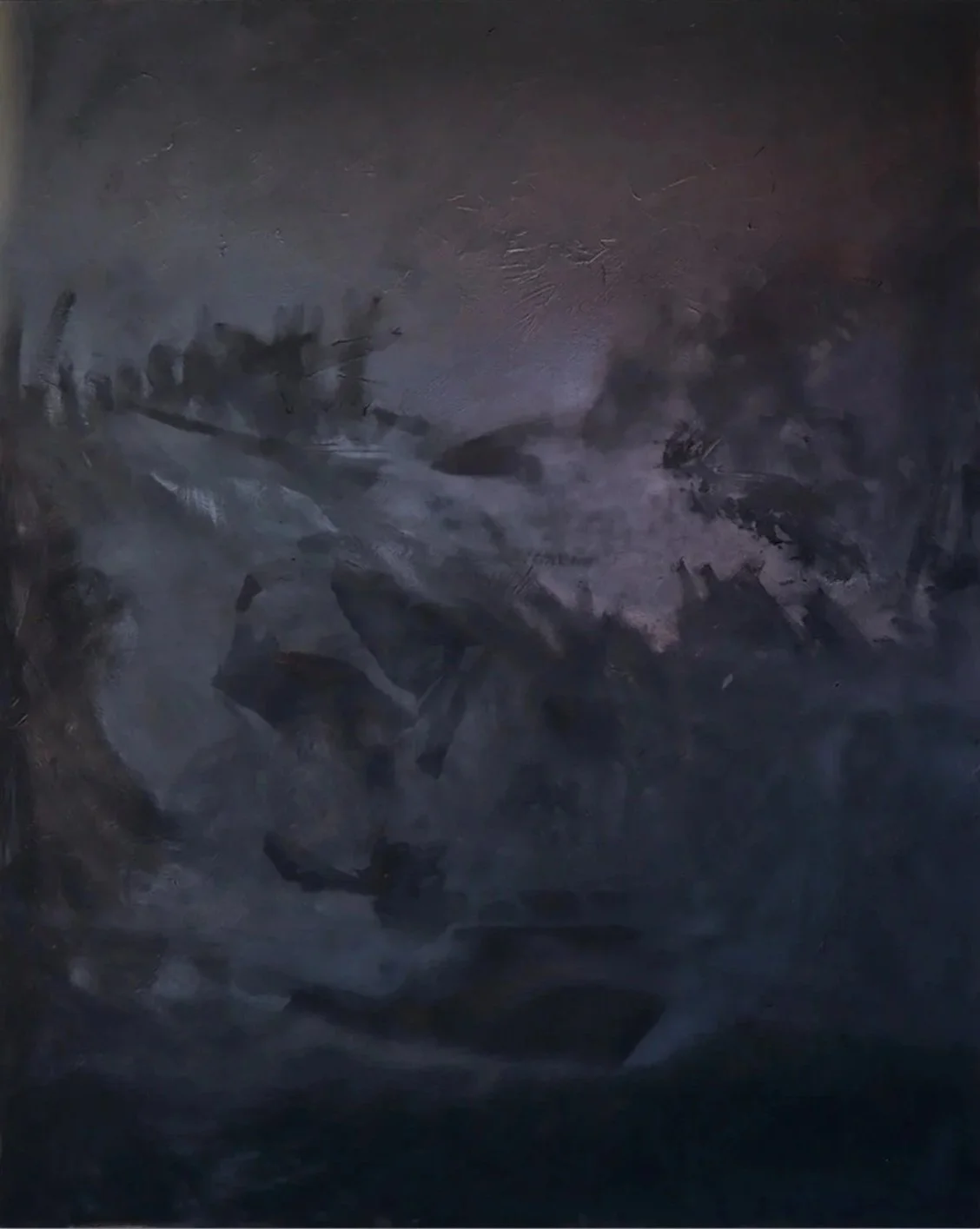 Júlia Godoy, Bone Black I (2024), charred bone, cold wax, and oil on birch panel, 60 x 40 in.